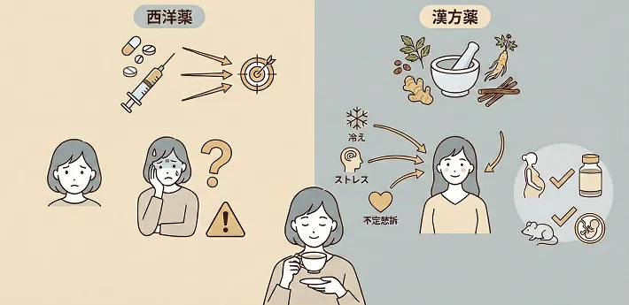 西洋医学では対処しきれない「なんとなく不調」に対して、漢方は体質や全身バランスを整えることで改善を目指せます。
