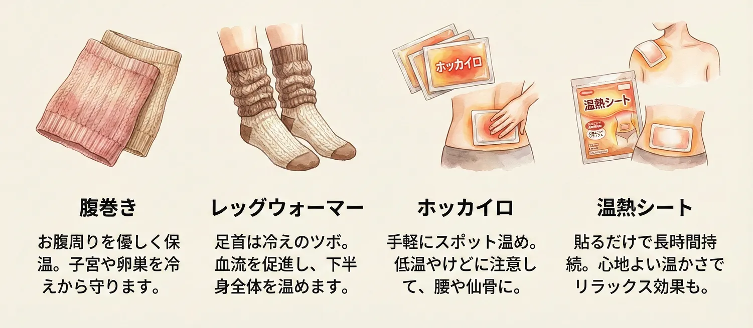 冷えを防いで体を温めるためにも、前述したグッズを日常に取り入れてくださいね。