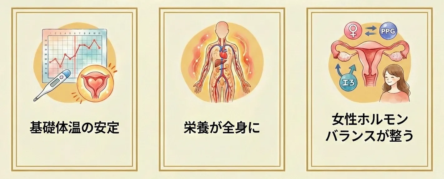 2つ目は、冷えによる自律神経の乱れが女性ホルモンバランスの乱れも引き起こすからです。