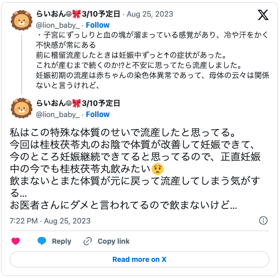 流産経験があるこの方は、漢方を使用することで妊娠したそうです。